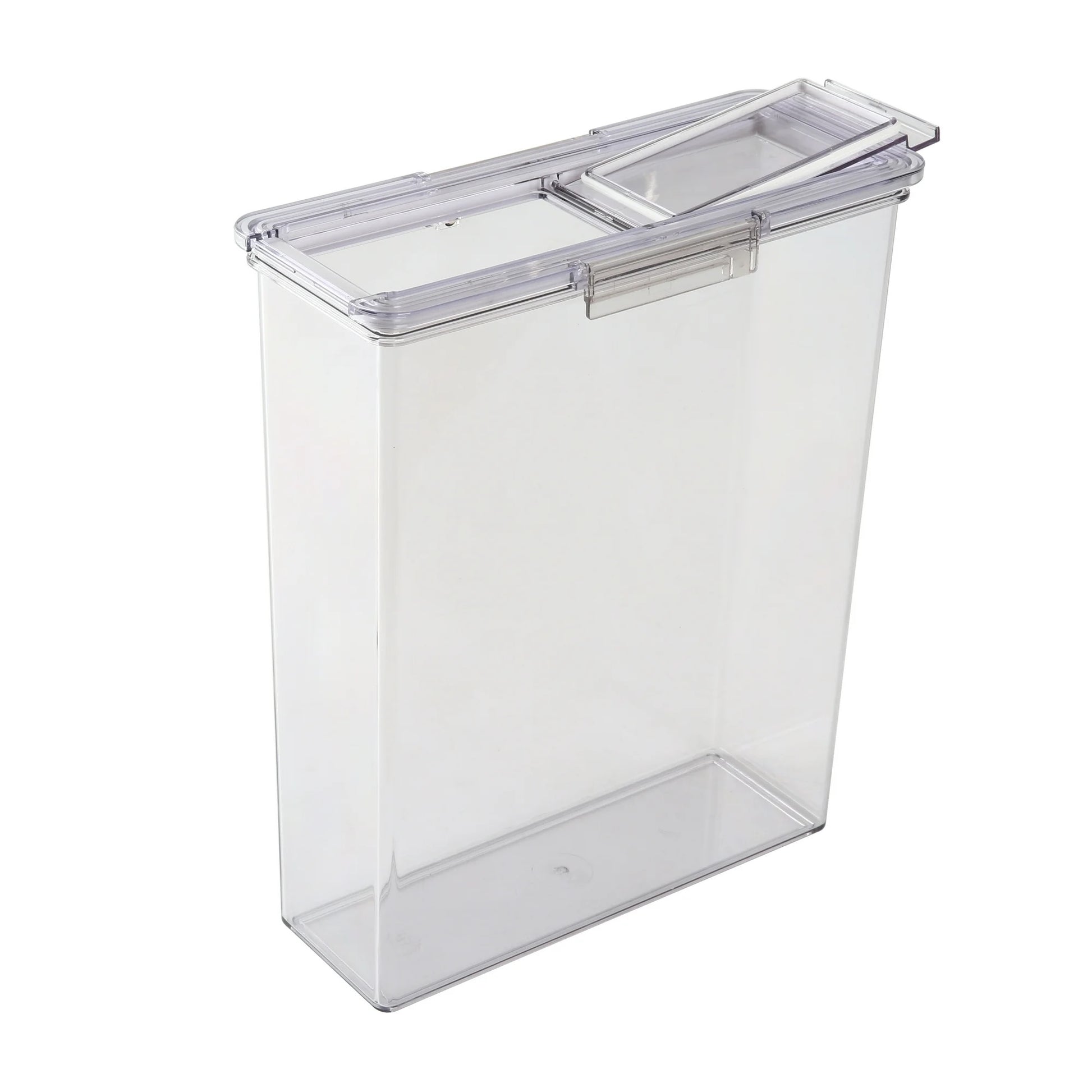 Store and pour! Closing a box once you've opened it? Nearly impossible. Pouring out of bulky packaging? What a mess. Thankfully, this canister is a solution for both. Use for cereal and more.