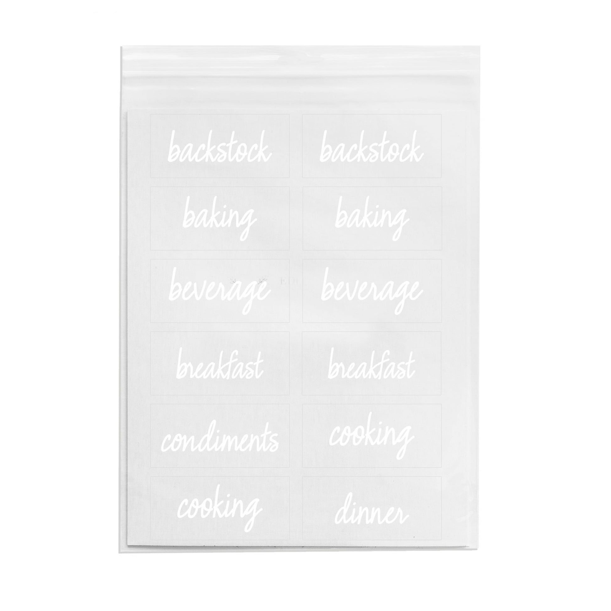 You've categorized and contained, now it's time for the finishing touch! Printed in our signature script with crisp white ink, our Pantry Labels will help you clearly identify the contents in each container, making your system easy to use and even easier to maintain.
