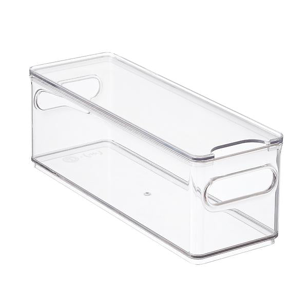 Meet the great solution for effortless fridge and freezer organization - the all-purpose bin from The Home Edit by iDesign. These modular bins are designed with convenience in mind, featuring a clear design that ensures easy visibility of contents, making it a breeze to find what you need. Perfectly stackable to maximize shelf space, these bins are ideal for organizing various items, from leftover bags and snack pouches to juice boxes and individual yogurts. Integrated handles provide easy grab-and-go convenience, while the durable PET plastic construction ensures long-lasting use. These versatile bins can be stacked with or without their removable lids, making them adaptable to your specific needs. Although they fit counter-depth refrigerators, please note that they are not dishwasher safe and should be hand-washed only.