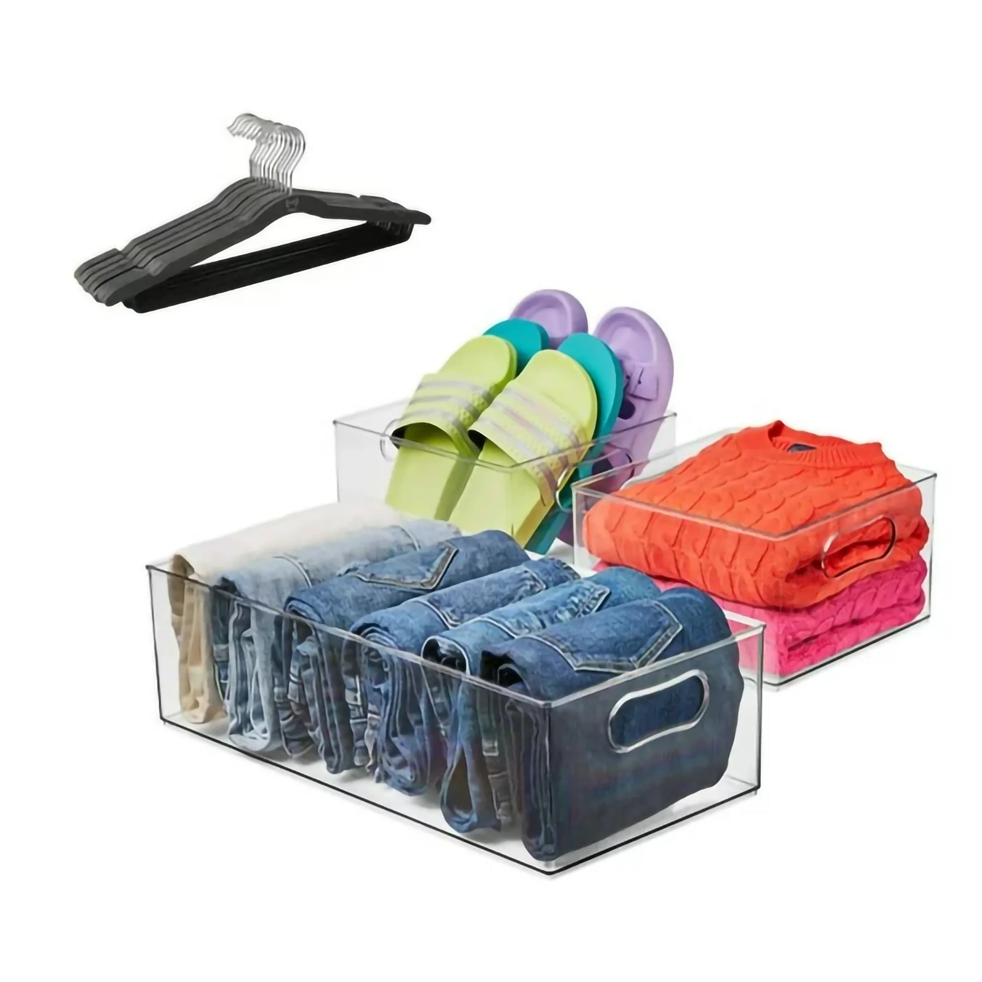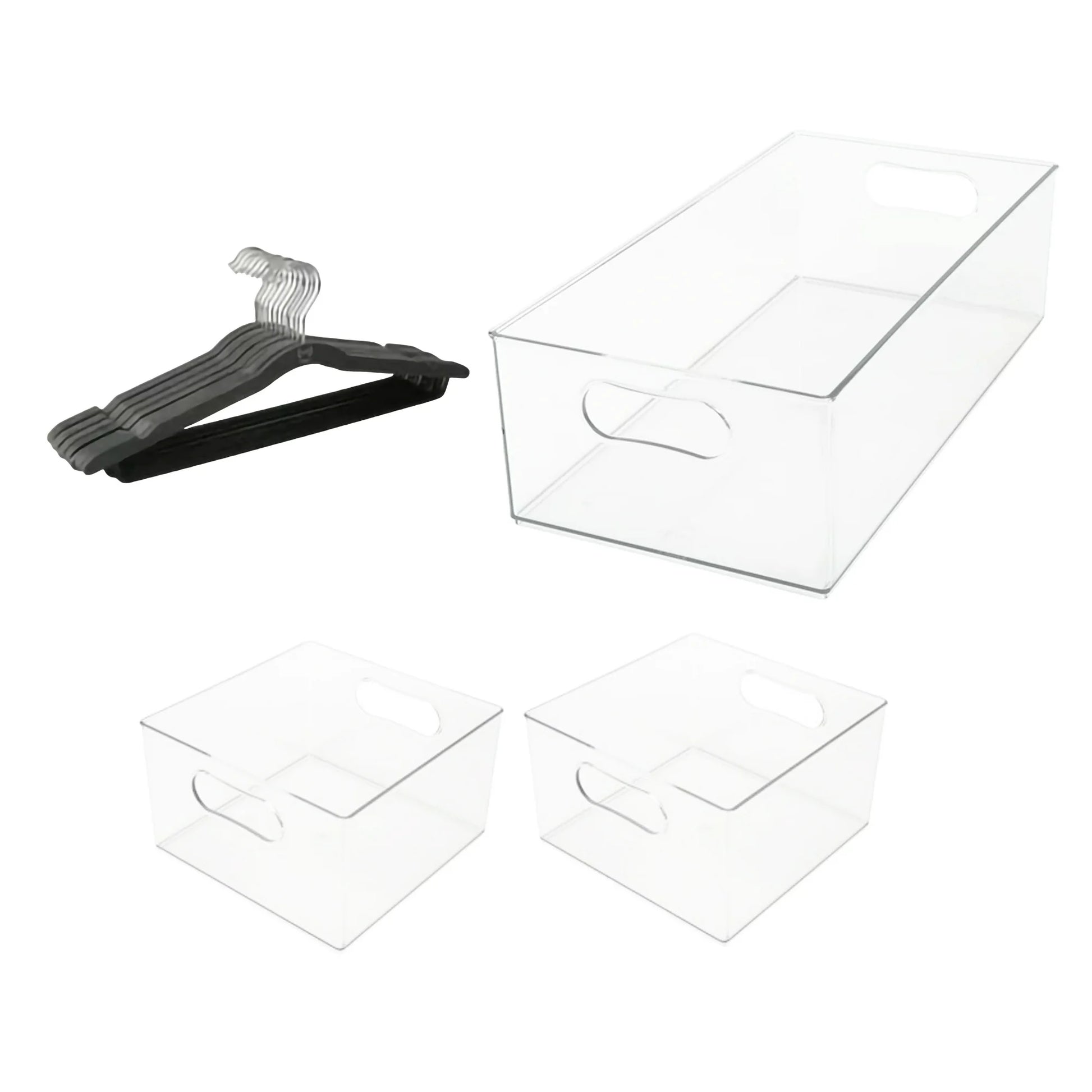 The Home Edit 15 Piece Small Space Edit is here to kick off your next organizational adventure. When a space is small and you need to fit it all, have no fear because solutions are here! From clear stackable bins to thin wood hangers, these products will optimize your organization so you can do more and stress less.