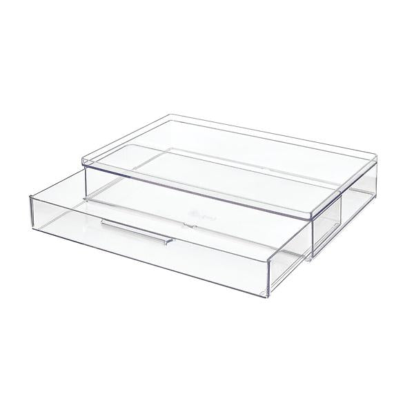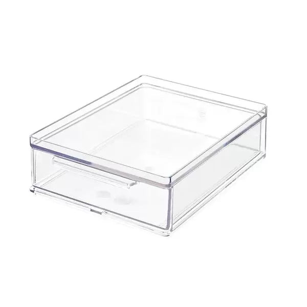 Discover the perfect solution for your bathroom organization needs with the Home Edit by iDesign Vanity & Makeup Collection. This innovative collection features modular and stackable drawers, allowing you to create personalized storage solutions for all your essentials. From makeup palettes and accessories to hair clips and more, everything has a designated place. The pull handles ensure effortless access, while the clear plastic construction maintains a clutter-free aesthetic even in compact spaces.
